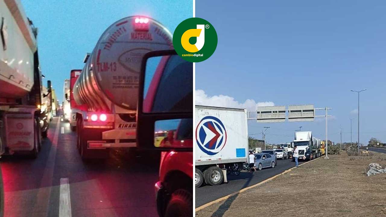 Traileros bloquean libramiento vial portuario kilómetro 13.5 de Veracruz