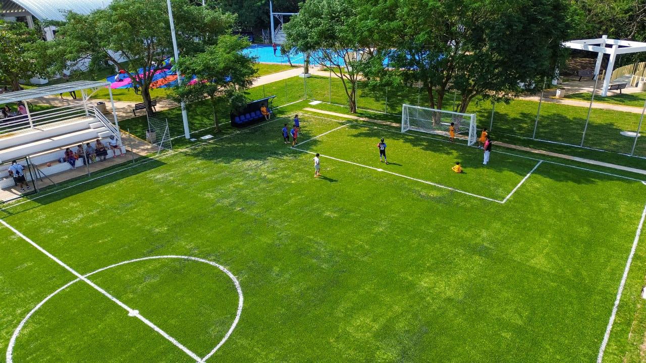 El espacio revitalizado incluye la construcción de domos en las canchas multideportivas con piso nuevo, iluminación y gradas para espectadores; senderos de concreto armado; instalación de malla triple nudo en campos de arena y sintético; así como cercado perimetral con malla ciclónica y reja de acceso.