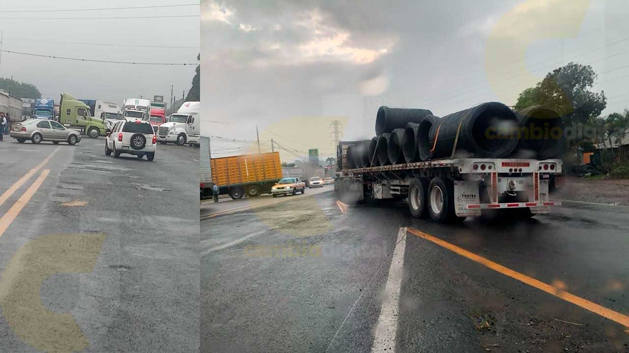 En la autopista Veracruz-Puebla y entronque con la carretera federal 150 por Rancho Trejo, Amatlán de los Reyes, tráilers con y sin sus cajas o remolques se concentraron para realizar una marcha pacífica a vuelta de rueda.