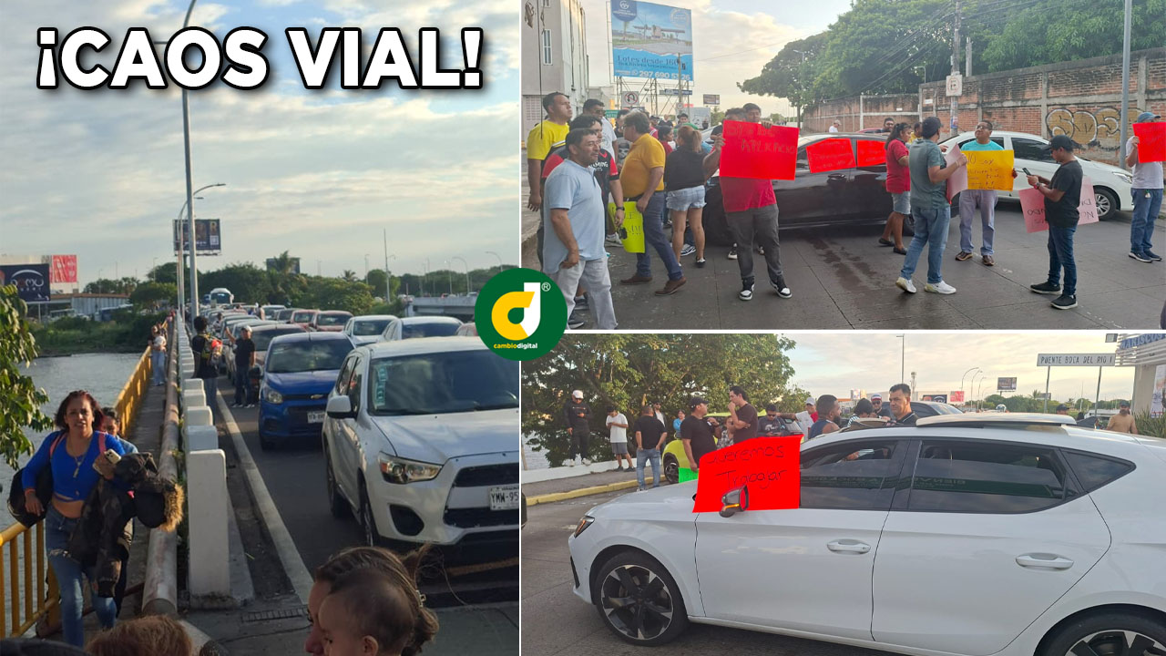 Tras 5 horas de bloqueo, taxistas de DIDI e InDrive abren puentes de Boca del Río