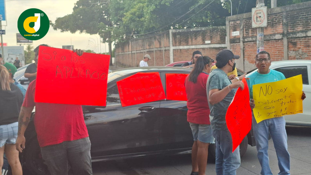 Los manifestantes señalaron que ellos están en orden, pagan impuestos y permisos, pero los líderes de transportistas presionan a las autoridades para que detengan a quienes trabajan por aplicación.