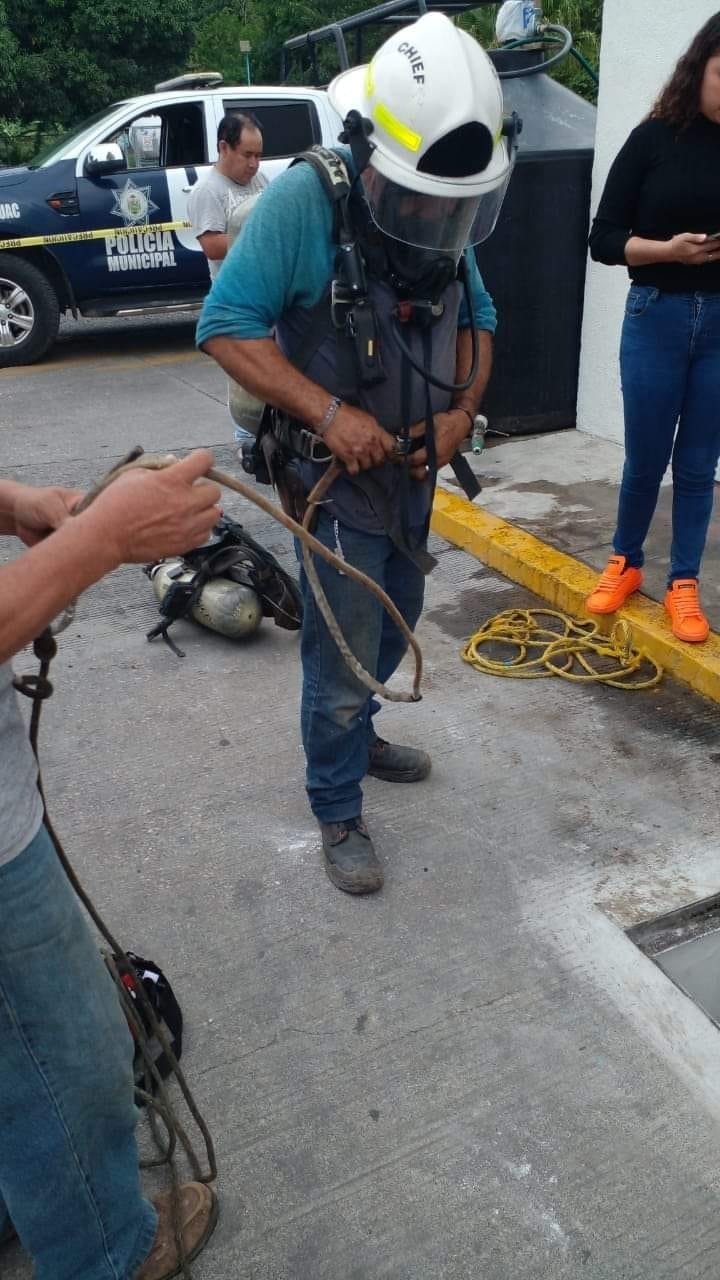 Bomberos de Cuitláhuac lograron rescatar a los pintores quienes se sintieron mal y se desmayaron dentro de la cisterna.