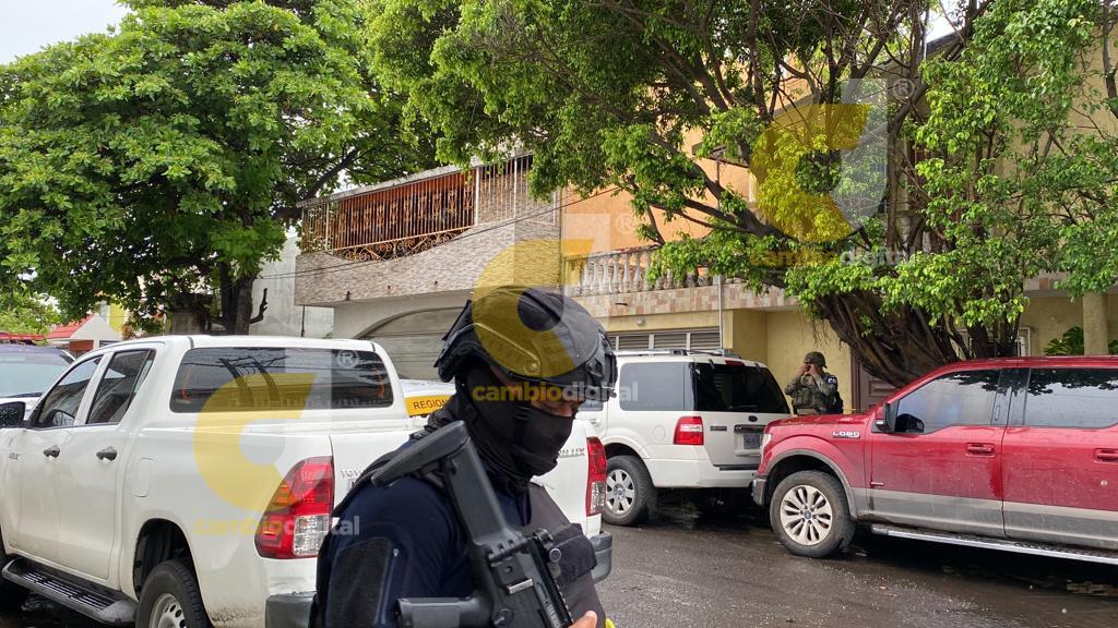 Hacia el mediodía personal de la fiscalía llegó para ver cuántas cámaras de seguridad había en torno a la residencia y a simple vista se observa la de una tienda de conveniencia que está dirigida a la entrada de la negociación.