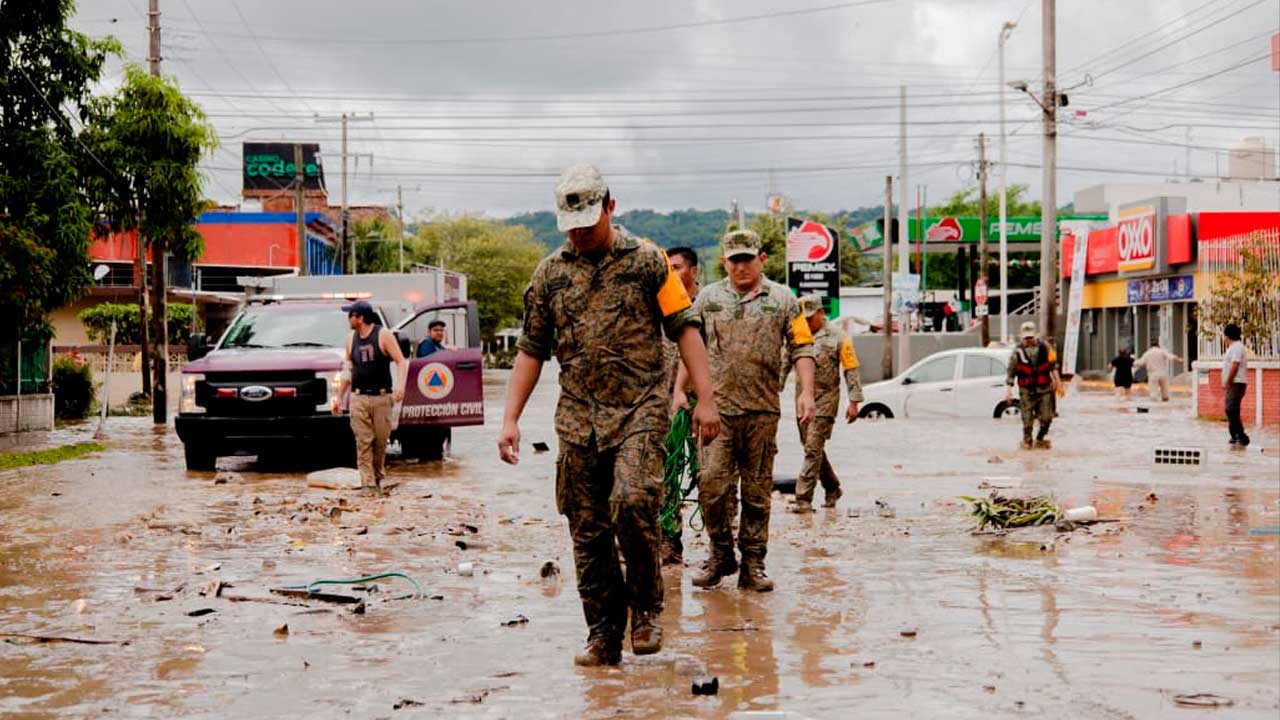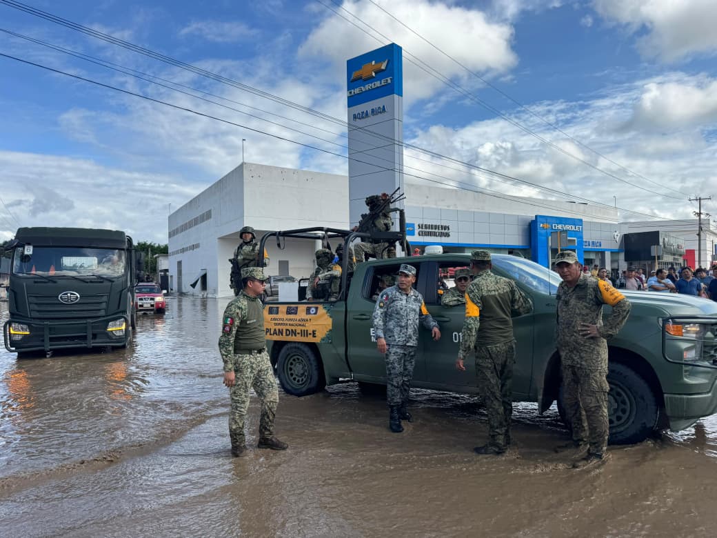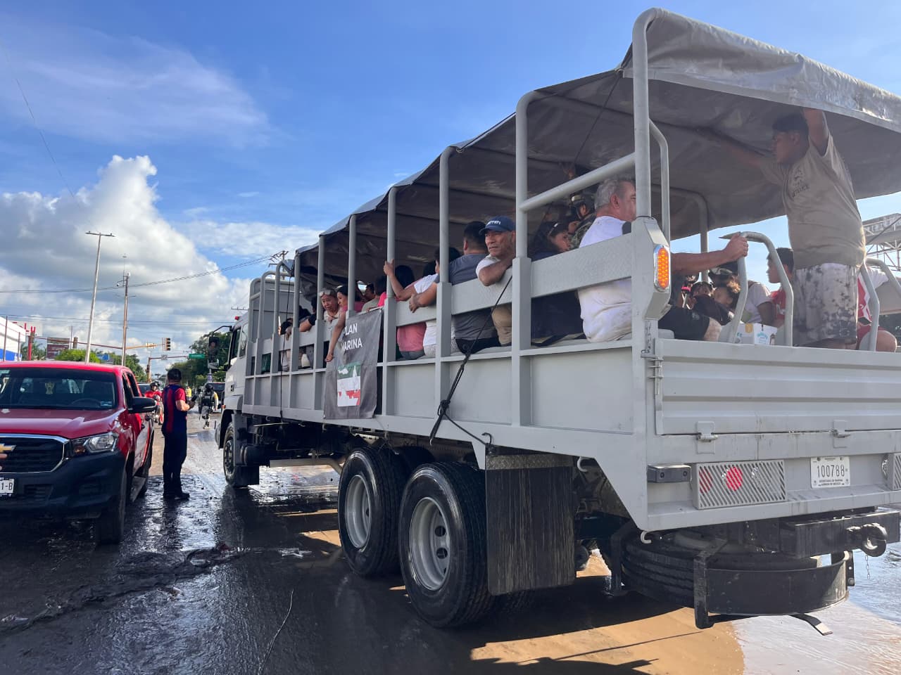 Brigadas de SEDENA, SEMAR, Guardia Nacional y Protección Civil recorren las colonias cercanas al río para auxiliar a personas atrapadas, realizar evacuaciones preventivas y garantizar el acceso seguro a los Refugios Temporales, donde se proporciona atención médica básica, alimentos, agua, ropa y resguardo seguro. Se cuenta con ambulancias listas para emergencias, personal de salud atendiendo a quienes lo requieren y lanchas para trasladar de manera segura a las familias en zonas inundadas.