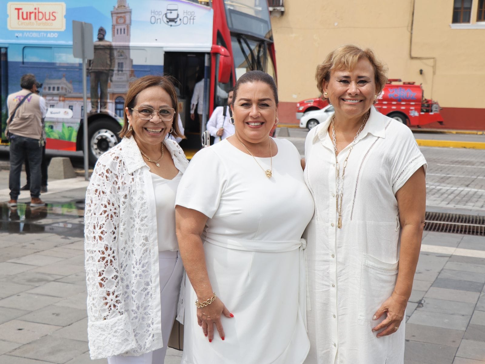 Veracruz, Ver.- La presidenta del DIF, Yleana del Rosario Álvarez Vera, en representación de la alcaldesa Lizzette Álvarez Vera, asistió a la Plaza de la República en el Puerto de Veracruz, a la firma de convenio con Servicios al Turista con los "Ángeles Verdes" y al banderazo de salida con el nuevo circuito del Turibus "Veracruz - Marina, Armada de México".
