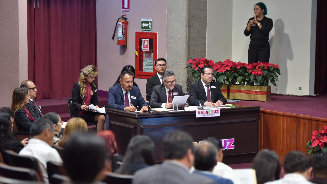 Xalapa, Ver., 19 de noviembre de 2025.- Las diputadas Nallely Mendoza Camarillo, Imelda Garrido Alvarado y Miriam García Guzmán, presidenta, secretaria y vocal respectivamente de la Comisión Permanente de Turismo recibieron la comparecencia del titular de la Secretaría de Turismo (Sectur), Igor Fidel Rojí López, en la glosa del Primer Informe de Gobierno.