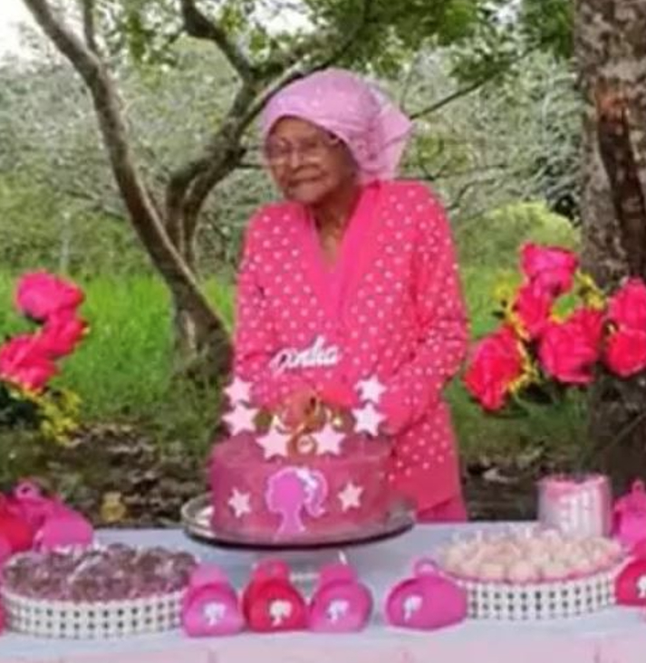 Mujer celebra su cumpleaños 107 con pastel y dulces al estilo de Barbie