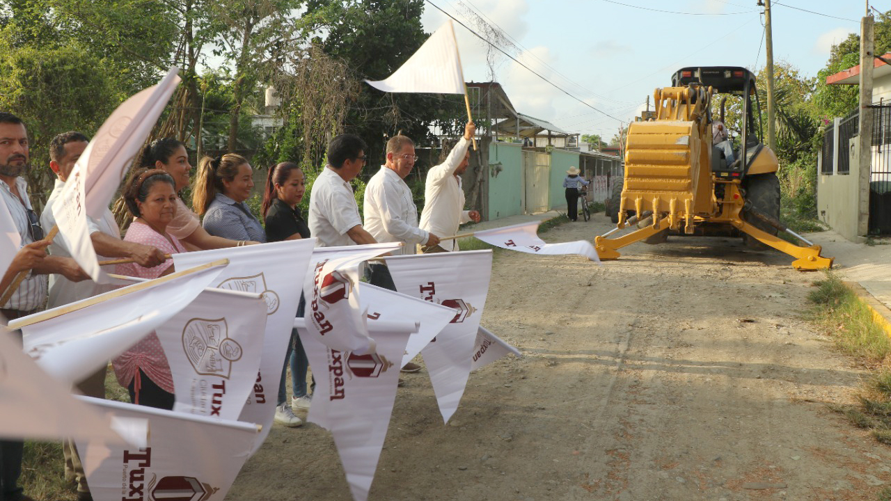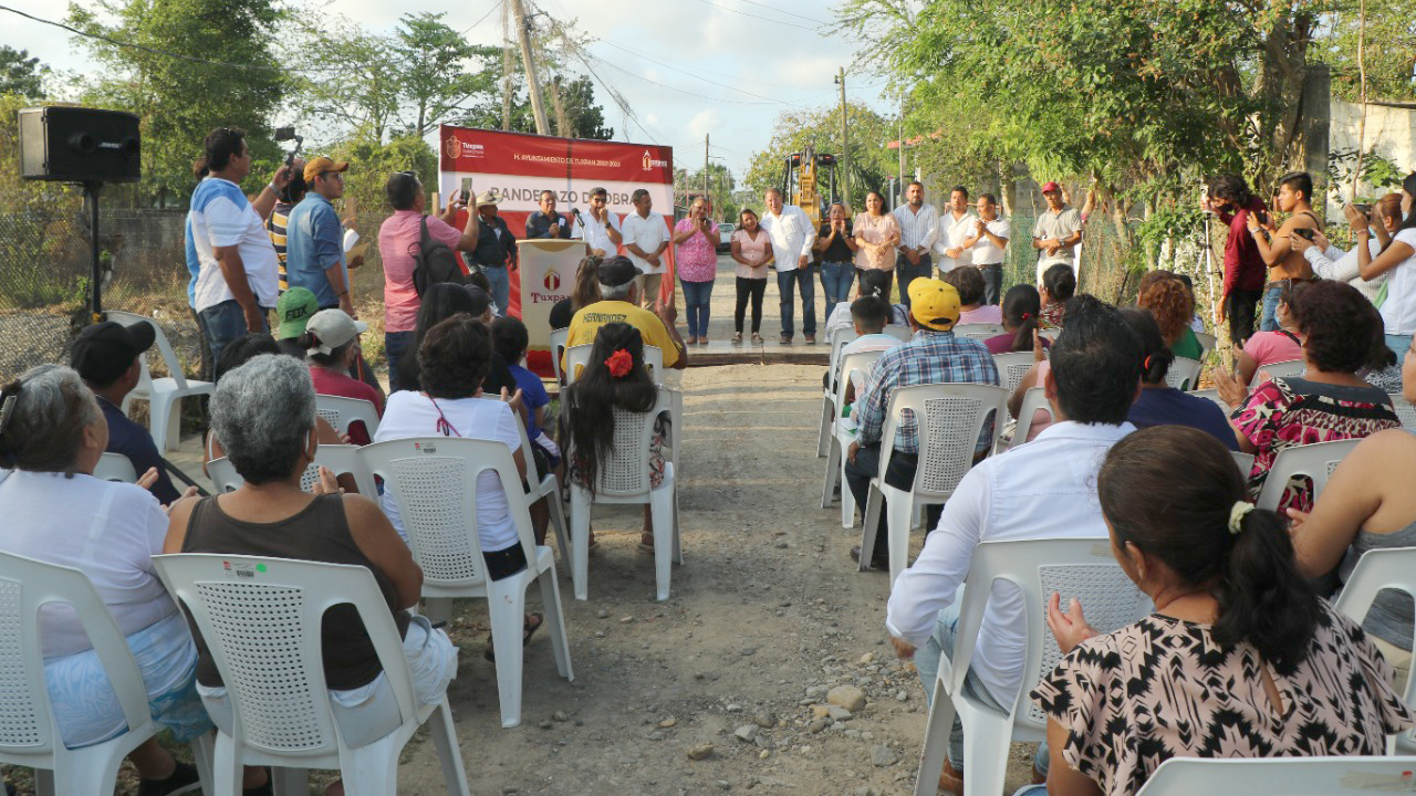 Tuxpan, Ver.- El Gobierno de Tuxpan dio el banderazo de inicio de la construcción de pavimento hidráulico en la calle Palomas, de la colonia Ampliación Rodríguez Cano.
