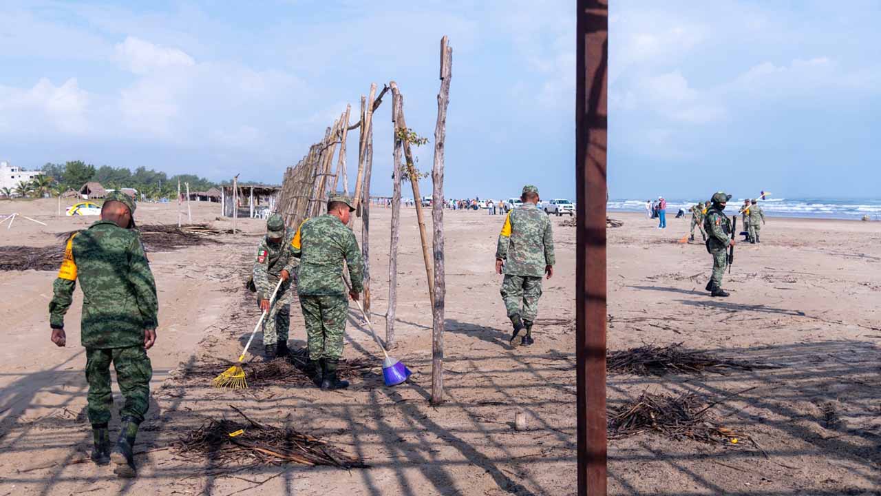 En cumplimiento a las instrucciones del alcalde Dr. Jesús Fomperoza Torres, el Secretario Técnico, directores, coordinadores y personal del Ayuntamiento se coordinó con los mandos y elementos militares para limpiar de Barra Norte a Playa Azul.