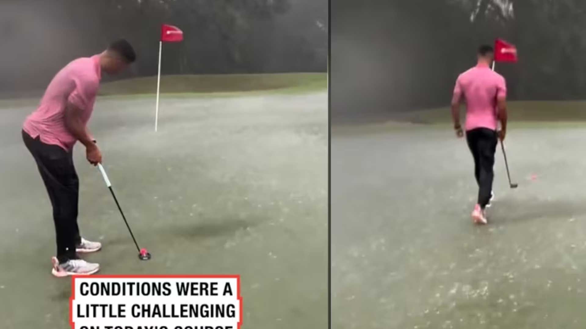 Un chico se vuelve viral al continuar jugando golf a pesar de las intensas lluvias y el mal clima