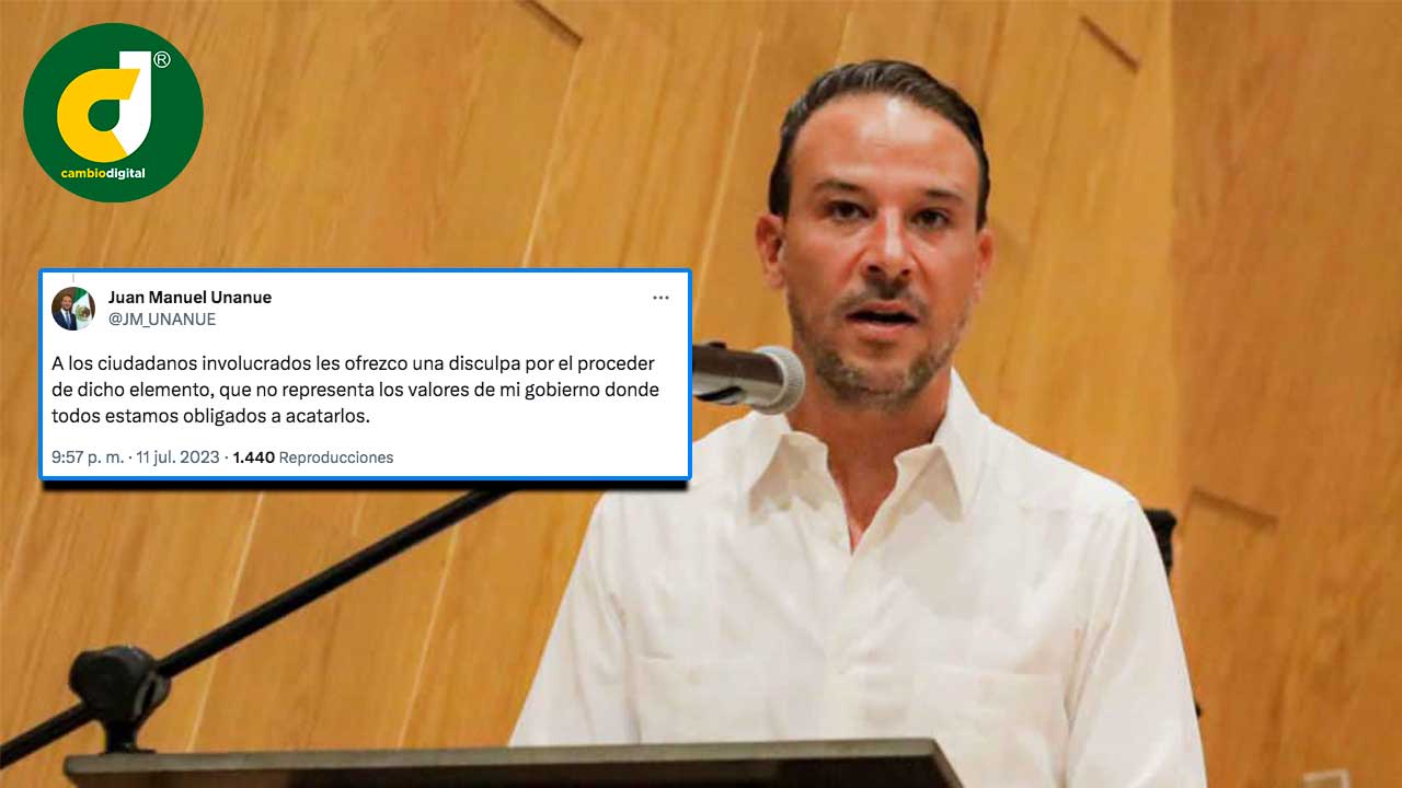 “A los ciudadanos involucrados les ofrezco una disculpa por el proceder de dicho elemento, que no representa los valores de mi gobierno en el que todos estamos obligados a acatarlos”, concluyó.