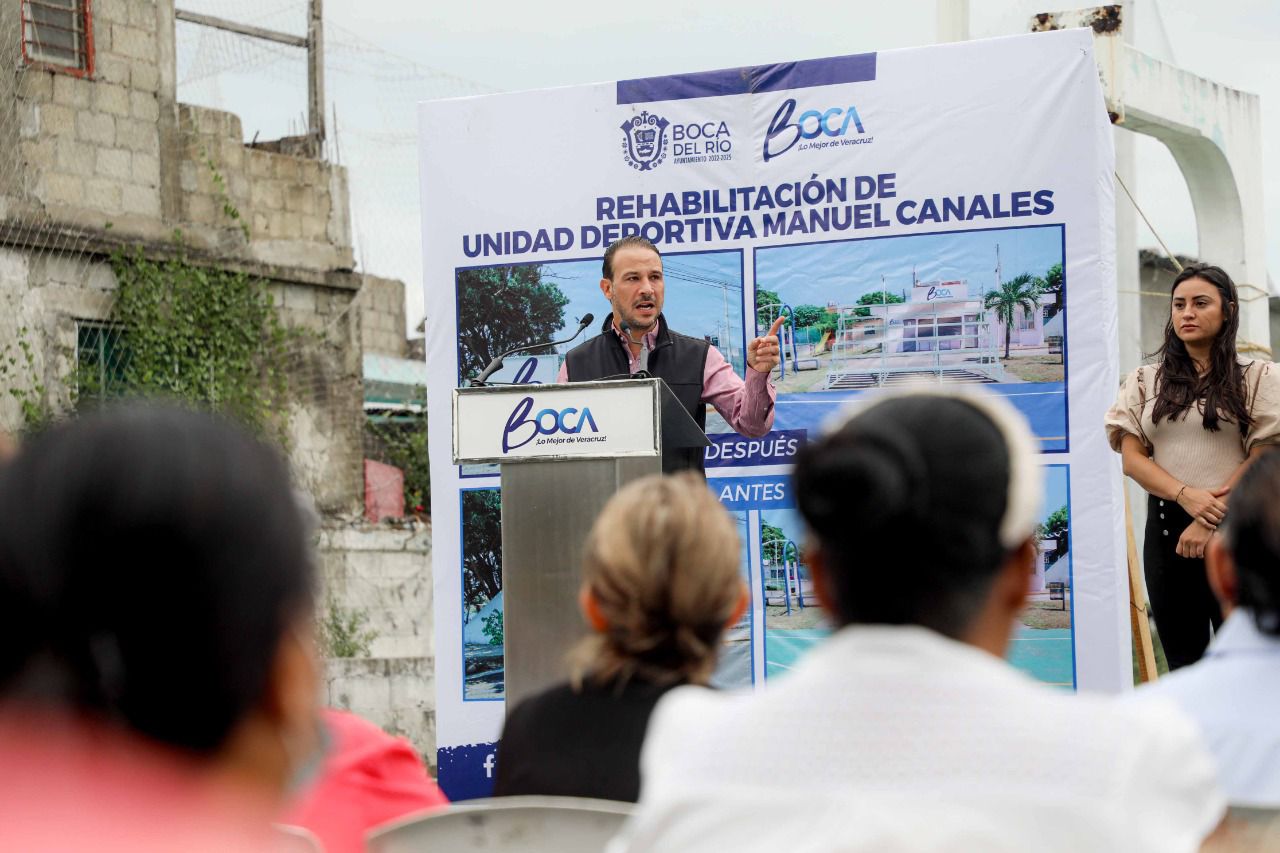Boca del Río, Ver.- En una de las zonas con mayor densidad poblacional, se puso en marcha la rehabilitación integral de la Unidad Deportiva “Manuel Canales Díaz”, de la mano del Alcalde de Boca del Río, Juan Manuel de Unánue Abascal.