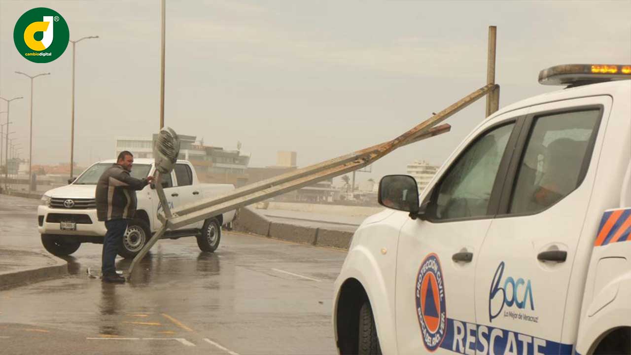 Boca del Río, Ver.- Ante la presencia del Frente Frío 33, el ayuntamiento de Boca del Río atendió puntualmente todos los llamados de emergencia generados por las fuertes rachas de viendo de norte.