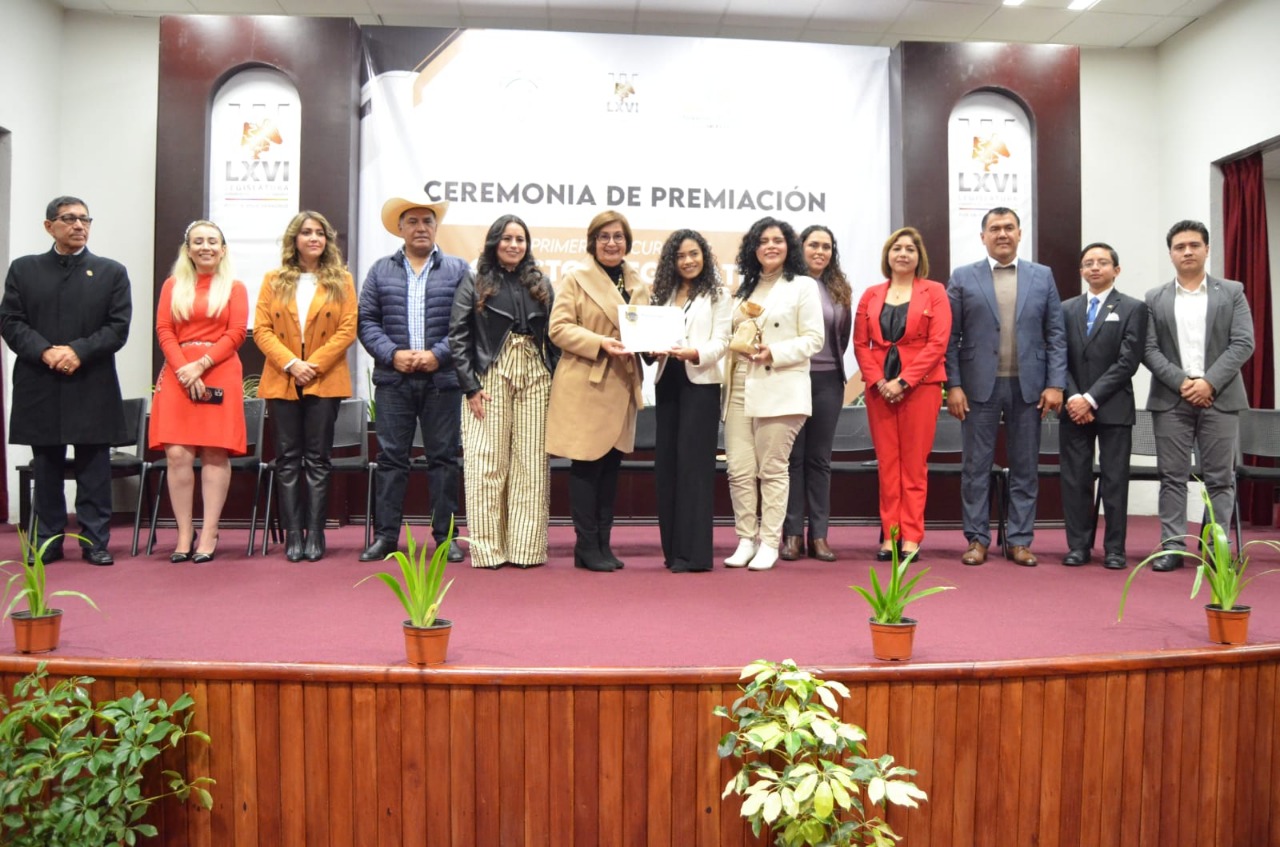 Esta mañana, la Diputada, acompañada de las legisladoras Ruth Callejas Roldán, Lulú Juárez Lara, Anilú Ingram Vallines y Arianna Guadalupe Ángeles Aguirre, y de los diputados, Fernando Arteaga Aponte y Marco Antonio Martínez Amador, además de invitados especiales en materia de derecho, agrupaciones juveniles y la academia, galardonó a los tres primeros lugares de los 37 proyectos participantes.