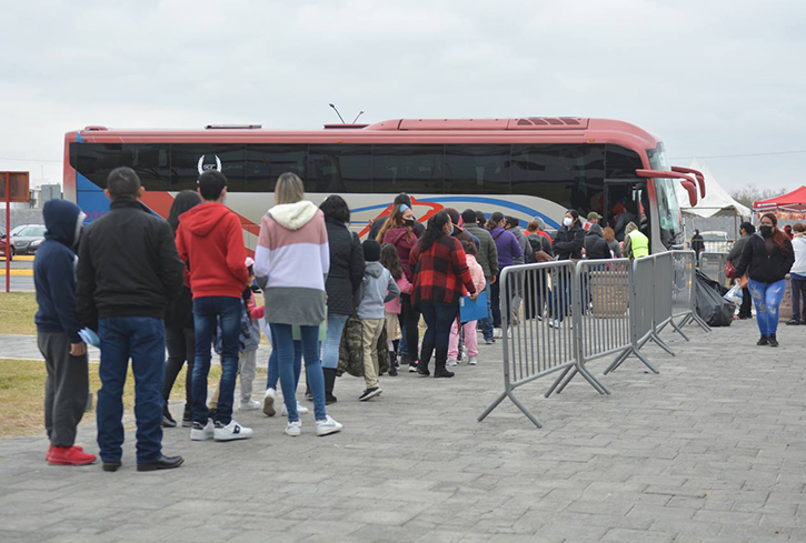 Se citó a las personas en diferentes horarios para ingresar de manera ordenada a los autobuses, evitar aglomeraciones y cumplir con las medidas sanitarias.