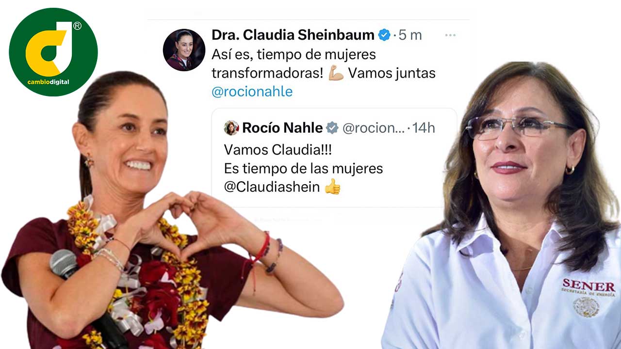 “¡Vamos Claudia, es tiempo de las mujeres!”, posteó la secretaria de Energía, Rocío Nahle García a lo que Sheinbaum Pardo citó de inmediato y respondió “Así es, tiempo de mujeres transformadoras! 💪🏼Vamos juntas Rocío Nahle”