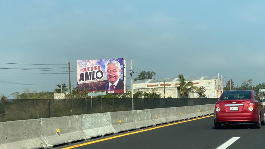 Veracruz, Ver.- Bardas y espectaculares con propaganda a favor de la ratificación del presidente Andrés Manuel López Obrador en la revocación de mandato del próximo 10 de abril, fueron vandalizadas en las zonas conurbadas Veracruz-Boca del Río y Coatepec-Xalapa, así como en Tuxpan.