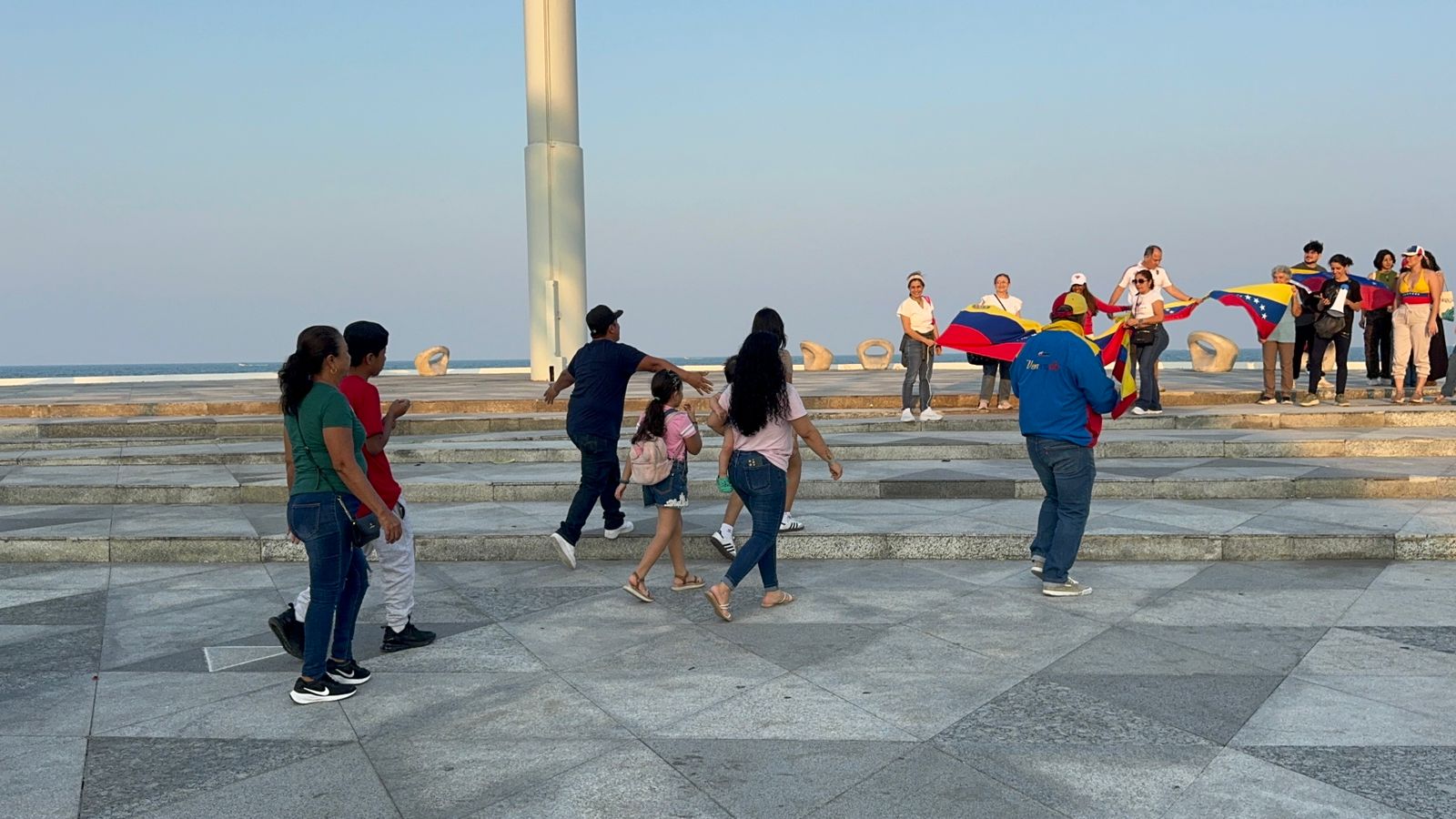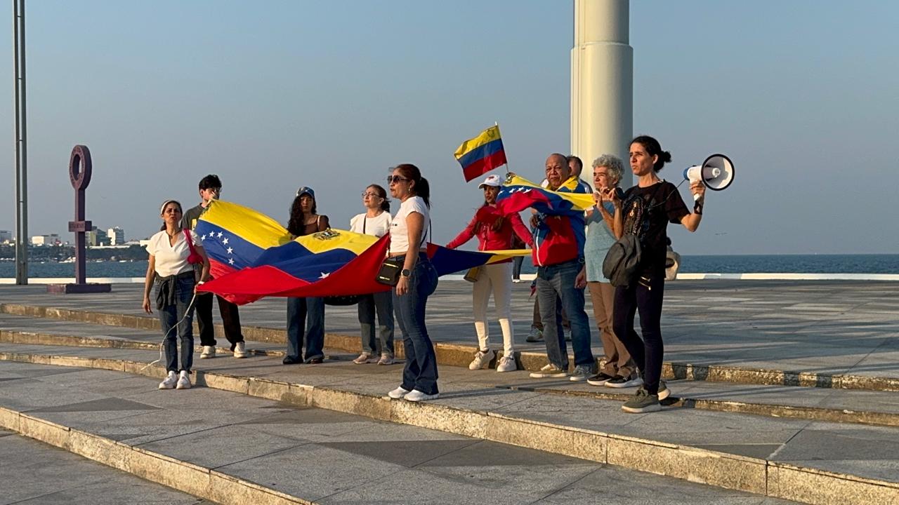 Veracruz Puerto.- Esta tarde, venezolanos residentes en Veracruz se concentraron en la plaza de la Soberanía del bulevar Manuel Ávila Camacho para celebrar la detención del presidente de Venezuela, Nicolás Maduro.