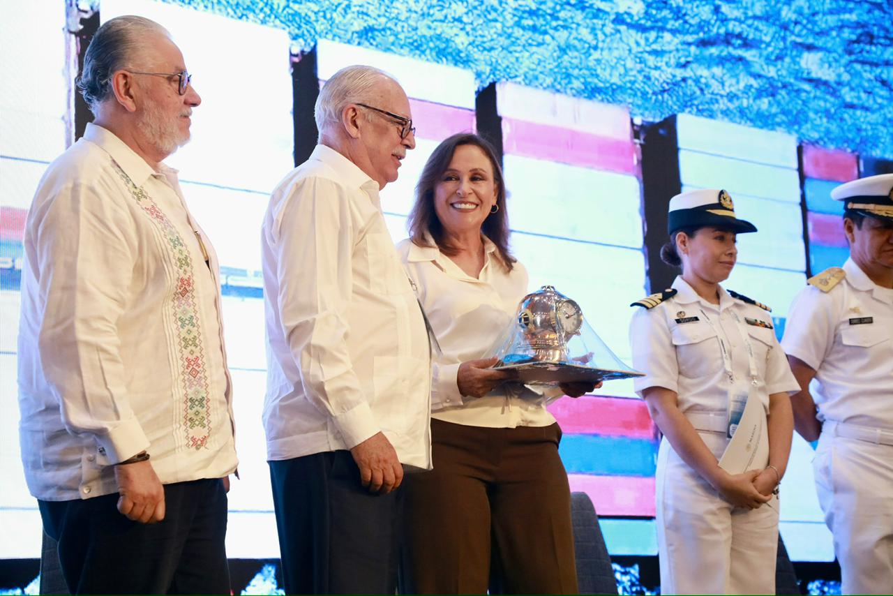 Compartió su experiencia al coordinar la logística marítima de la Refinería Olmeca en Dos Bocas, Tabasco, una de las operaciones más complejas de traslado de módulos industriales desde Corea del Sur hacia México, “la economía mundial depende del transporte marítimo. Como gobiernos, tenemos la responsabilidad de garantizar que esta interconexión funcione con eficiencia, sostenibilidad y visión de futuro”.
