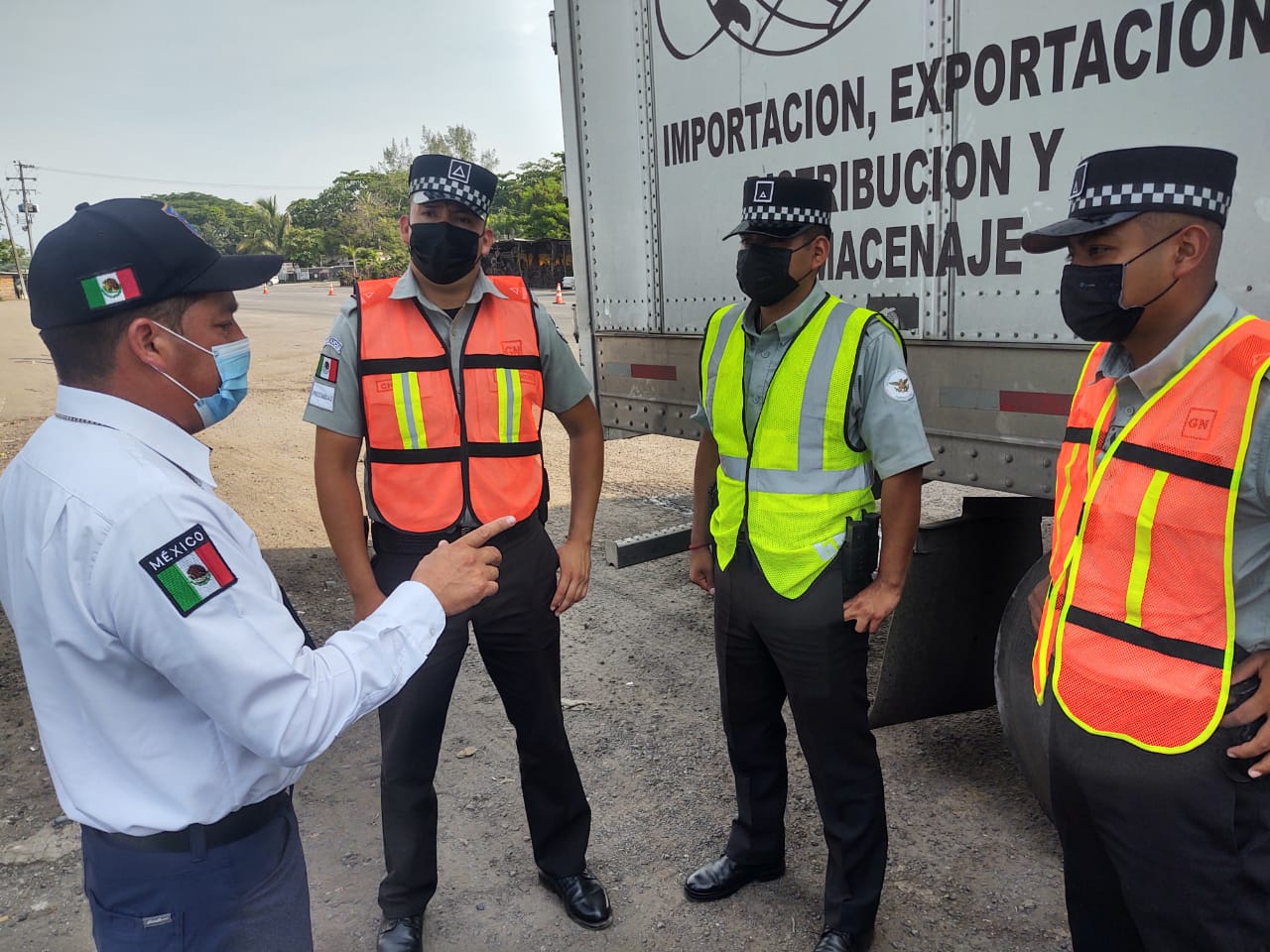 Ubicados en la carretera número 540-L libramiento Veracruz, tramo Santa Fe-Paso del Toro, ruta 180, tipo A4, Km 010+000 de la jurisdicción del departamento de Autotransporte Federal Veracruz, servidores públicos adscritos al Centro SICT Veracruz y elementos de la Guardia Nacional, participan en la jornada informativa en la que resaltan el uso del cinturón de seguridad, el respeto a los señalamientos de tránsito y la distancia entre vehículos al circular por carretera.