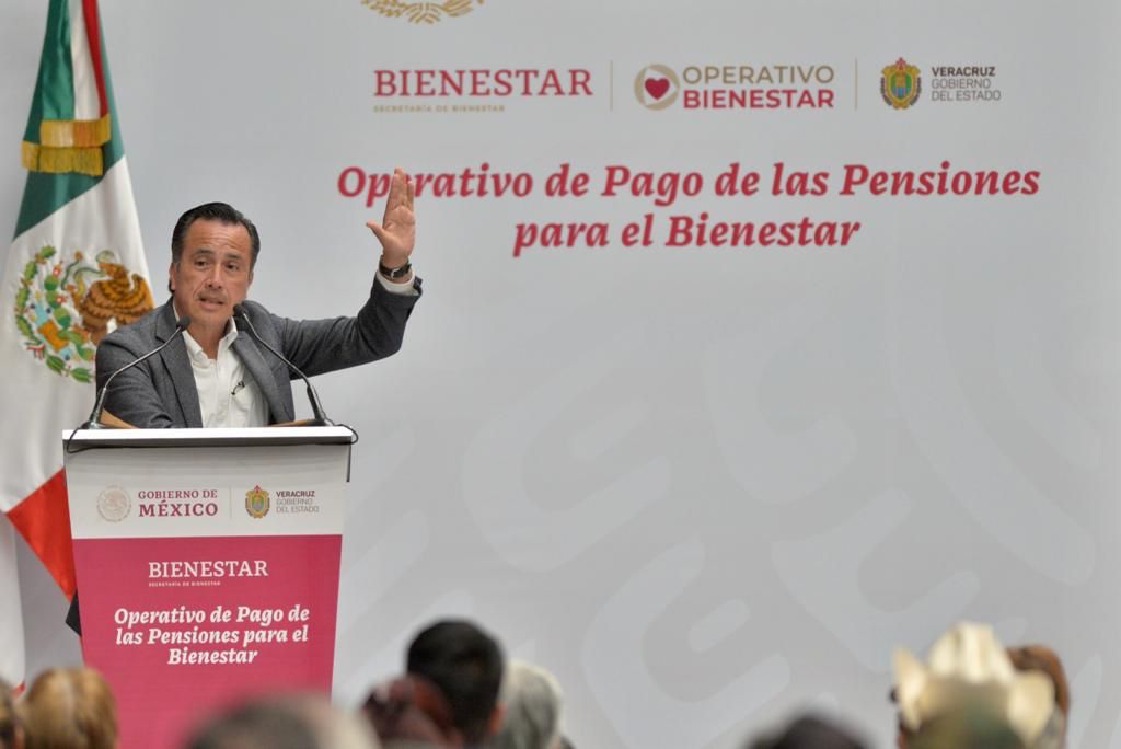Xalapa, Ver.- Durante la entrega de tarjetas de las Pensiones para el Bienestar, el gobernador Cuitláhuac García Jiménez señaló que hay un esfuerzo nacional para atender a las y los adultos mayores, tan solo hoy fueron entregados más de 30 mil pagos.