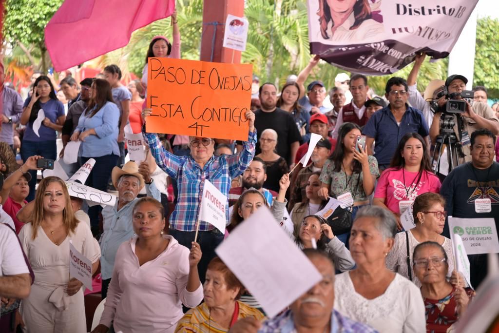 Paso de Ovejas, Ver.- Los veracruzanos y veracruzanas están convencidos que las políticas públicas bien aplicadas y sus resultados a cinco años de la Cuarta Transformación son argumentos para respaldar contundentemente a Morena y sus aliados, aseguró la precandidata única a la gubernatura por Morena, PT, Partido Verde y Fuerza por México en Veracruz, Rocío Nahle García.