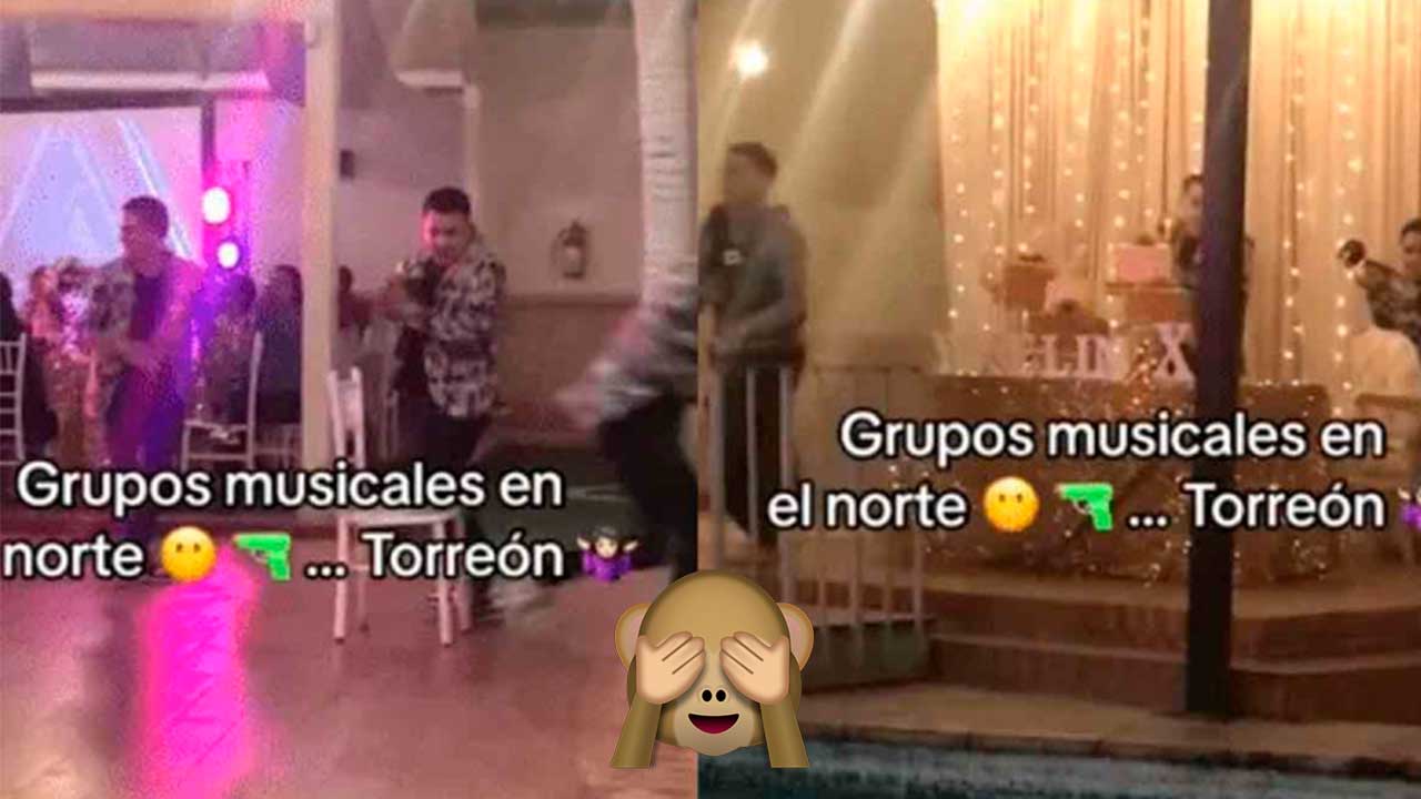Coahuila.- Mientras en varios puntos del país se registran tiroteos entre grupos delincuenciales, una banda en Torreón, Coahuila, pensó que era buena idea recrear un tiroteo como parte del show de entretenimiento en una fiesta de XV años, generando comentarios diversos a través de redes sociales.