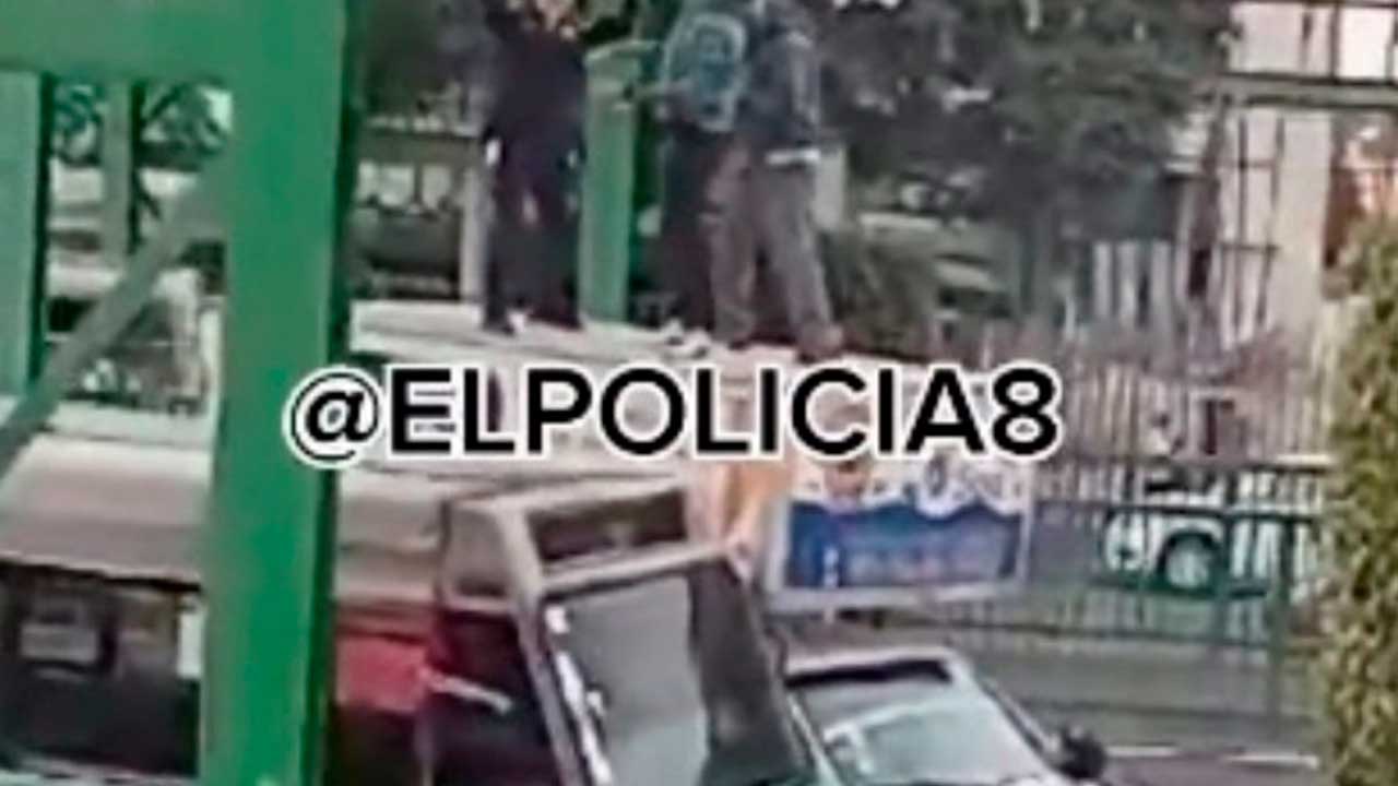 En el minuto que dura el video se observa gran tensión entre los que se encuentran en el lugar, mientras que la mujer cuelga del puente peatonal y grita.