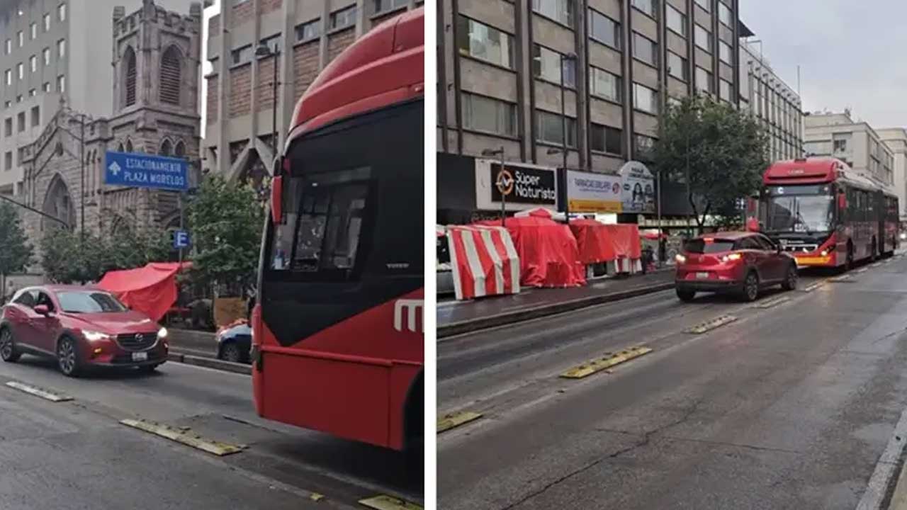 VIDEO: Mujer invade carril de Metrobús en CDMX y… ¡de reversa, mami!