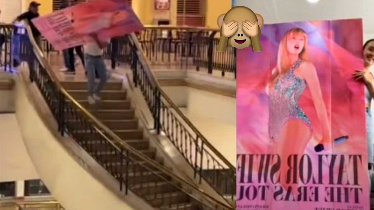 Por medio de TikTok se ha hecho viral un video, que al parecer fue grabado en una plaza comercial de Guadalajara, en la que se observa a un joven correr a toda velocidad mientras trae consigo el póster promocional de la película de Taylor Swift.