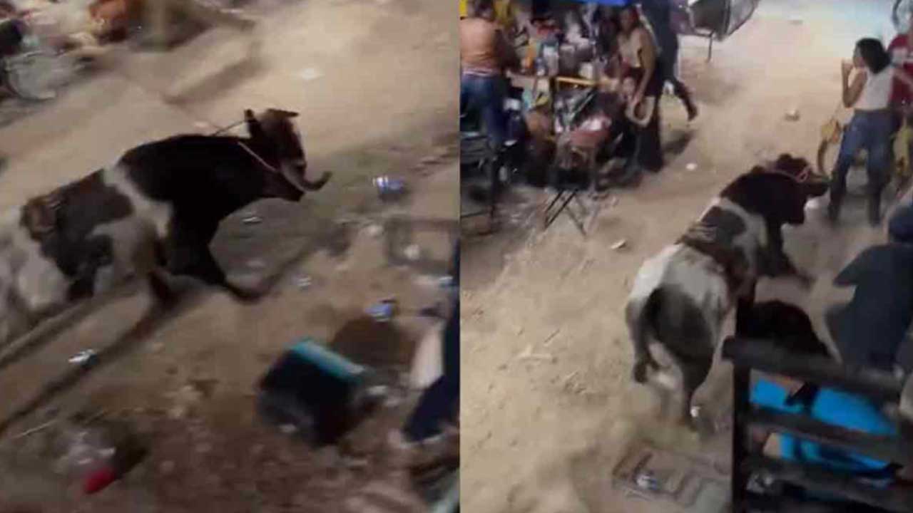 De acuerdo con la información compartida por los usuarios de redes sociales, el toro salió a gran velocidad del ruedo, provocando daños en los puestos de alimentos y provocando que decenas de personas corrieran para ponerse a salvo.
