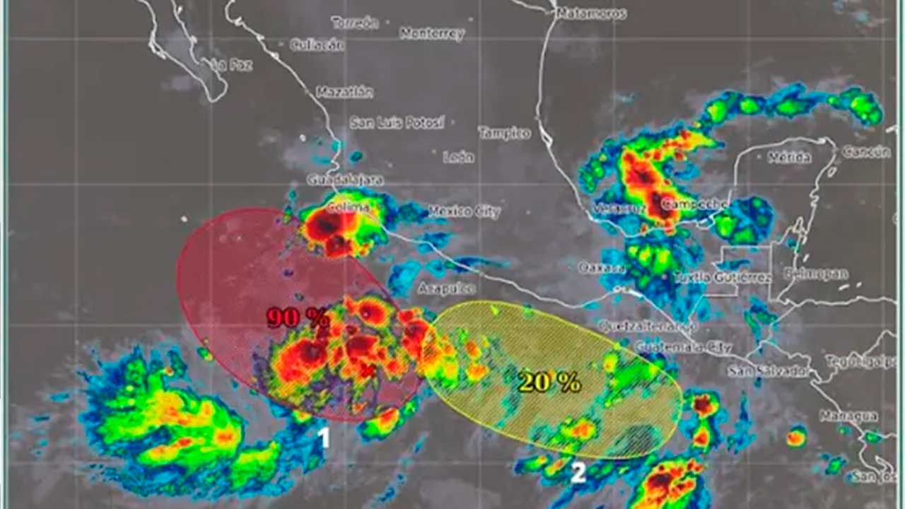 * Existe una muy alta probabilidad para un desarrollo ciclónico o posible ciclón tropical que se localizará al sur de las costas de Michoacán y Colima