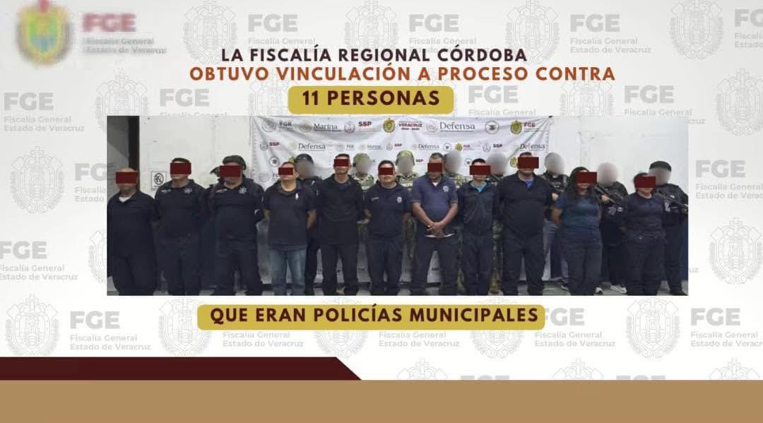 La Fiscalía Regional Córdoba obtuvo la vinculación a proceso contra las 11 personas que eran policías municipales al momento de la detención, como presuntos responsables del delito de incumplimiento de un deber legal, ejercicio indebido del servicio público, mientras que dos de los vinculados por los mismos delitos también los vincularon por delitos contra la salud.