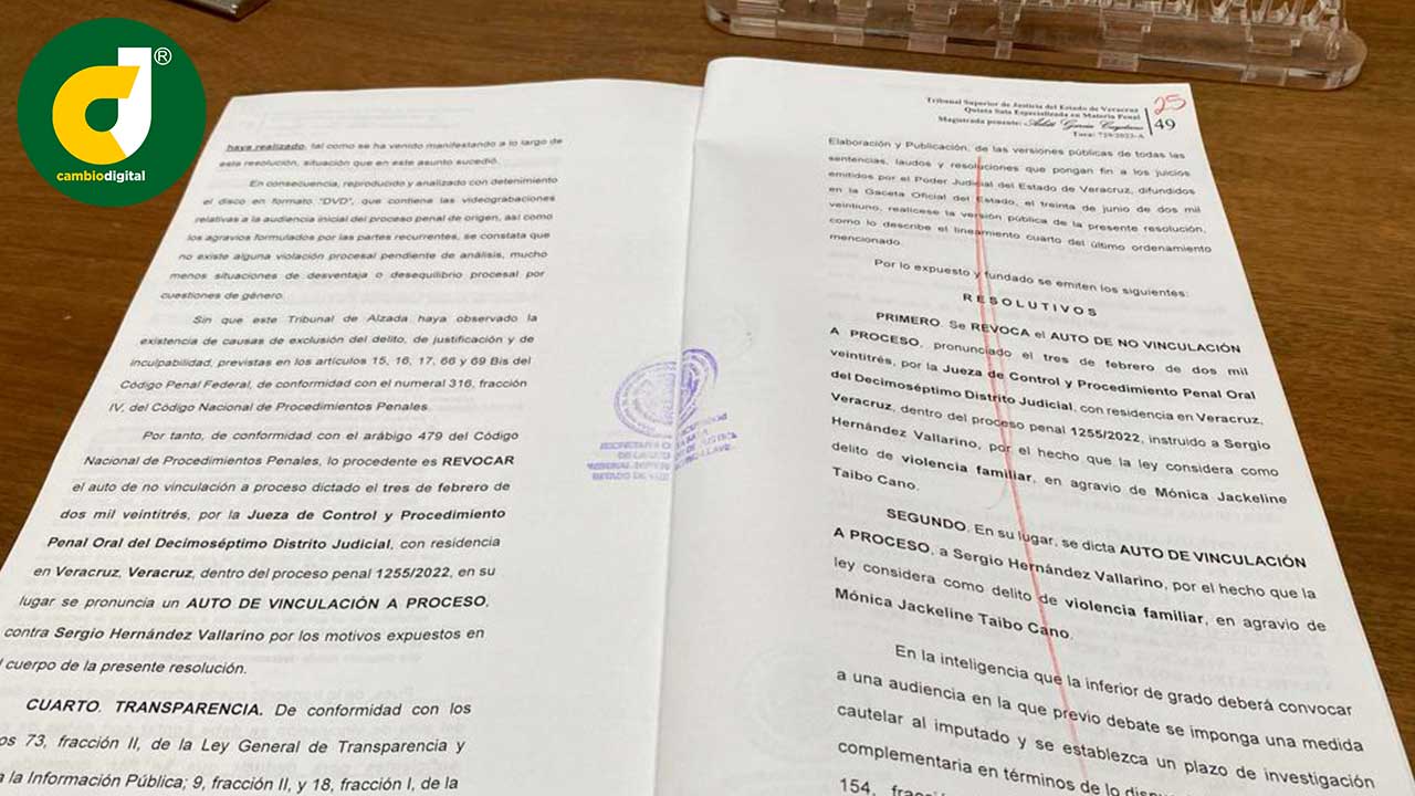 Este resolutivo revoca el auto de no vinculación que había dictaminado la jueza de Control y Procedimiento Penal Oral del Decimoséptimo Distrito Judicial, con residencia en Veracruz, Alma Aleida Sosa Jiménez, el 3 de febrero de 2023, dentro del proceso penal 1255/2022.