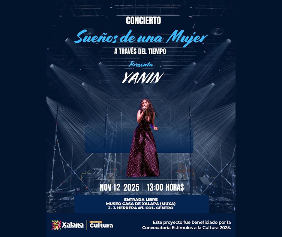 En el Muxa, Yanin ofrecerá el concierto “Sueños de una mujer a través del tiempo”. A las 17:00 horas continuará la XXI Feria Xalapeña del Libro con Poesía sobre la muerte, del Colectivo la Casa de las Palabras.
