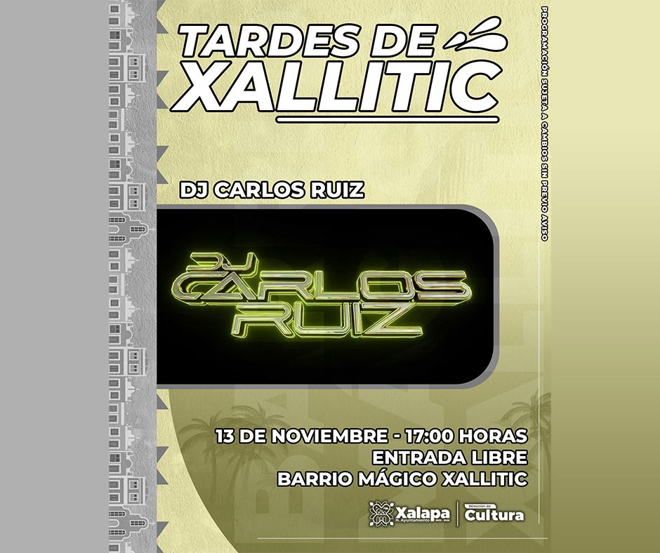 El jueves, en las “Tardes de Xallitic”, se presentará el DJ Carlos Ruiz a las 17:00 horas.