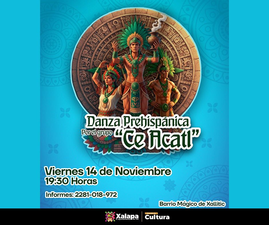 El viernes, a las 19:30 horas, en el Barrio Mágico de Xallitic, se presentará la danza prehispánica del grupo “Ce Acatl”. El sábado, en el Museo de la Música Veracruzana, se presentará el proyecto Kairos.