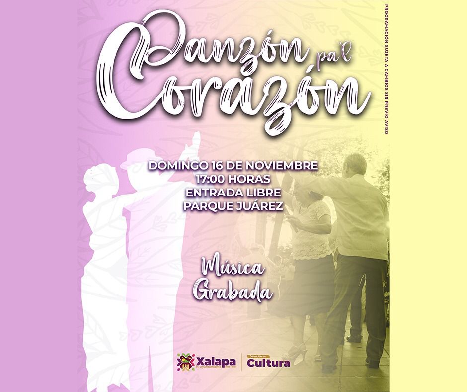 A las 12:00 horas en el parque Juárez se desarrollará el programa “Domingos Familiares”. A las 13:00 horas se tendrá el recital de fagot y piano de Ricardo Hernández. A las 17:00 horas en el parque Juárez se realizará el tradicional “Danzón pal corazón”.