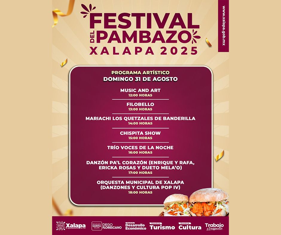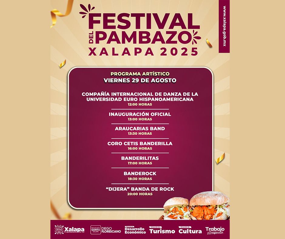 El viernes inicia el Festival del Pambazo Xalapa 2025 en el Parque Juárez, con actividades gastronómicas y artísticas desde las 12:00 horas. La inauguración oficial será a las 13:30 horas.