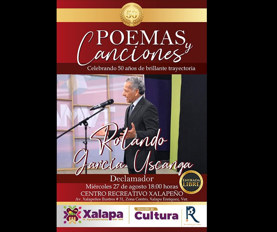El miércoles se celebrarán los 50 años de trayectoria del maestro Rolando García Uscanga, con un recital de poesía y canciones en el Centro Recreativo Xalapeño (CRX), a las 18:00 horas.