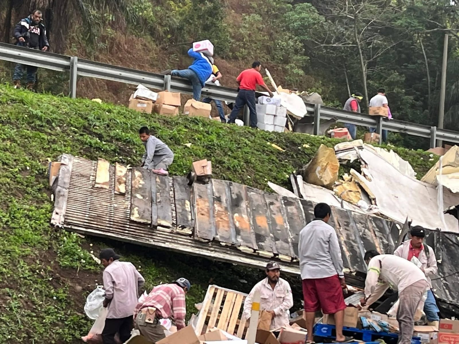 Volcó el tráiler… y comenzó la rapiña, ahora en la Coatzacoalcos-Villahermosa