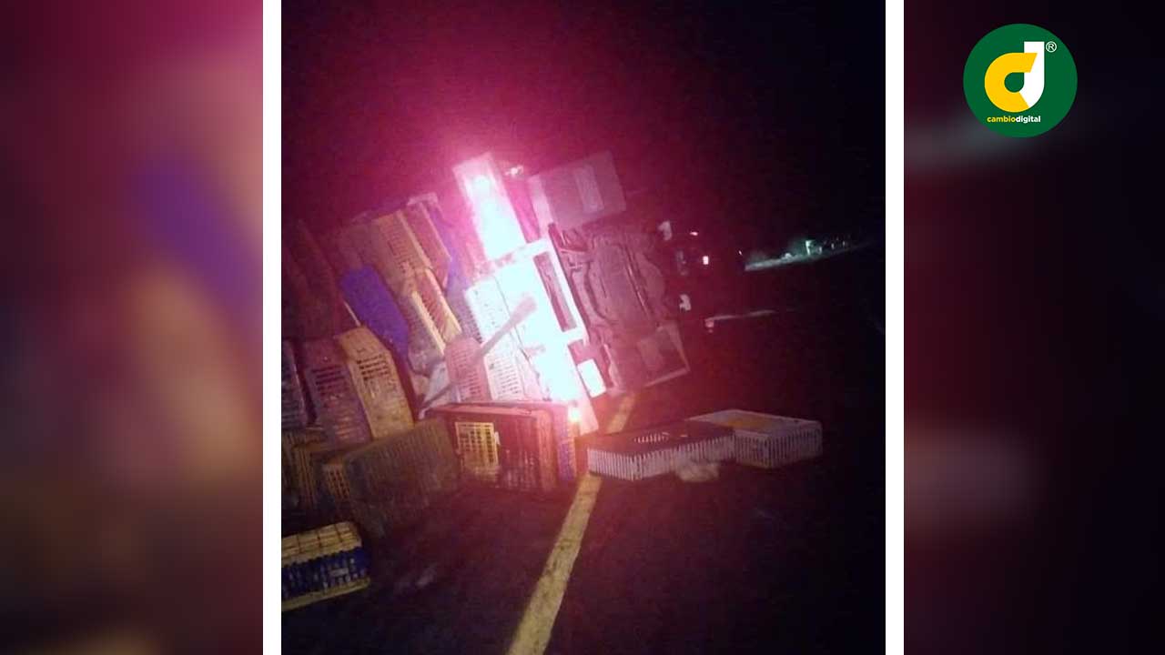 La mayoría de los pollos que eran transportados para su comercialización murieron por el percance.
