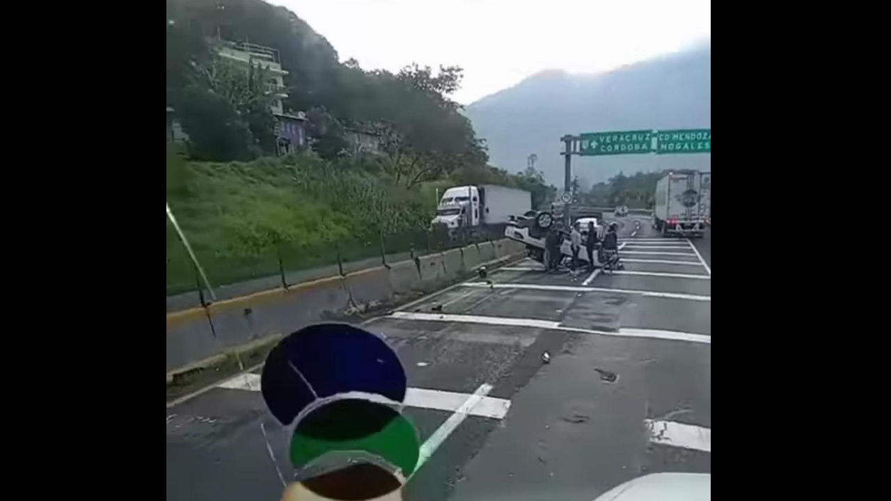 Ciudad Mendoza, Ver.- Este sábado en la autopista Veracruz-Puebla, a la altura de Ciudad Mendoza, se volcó una camioneta del ayuntamiento de Mendoza.