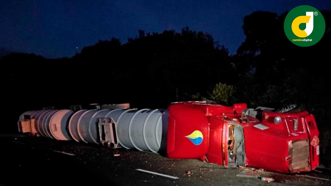 El accidente de la pipa doble remolque placas de circulación 21AL71, de la empresa Olsimex ocurrió poco antes de las 6:00 horas de este martes.