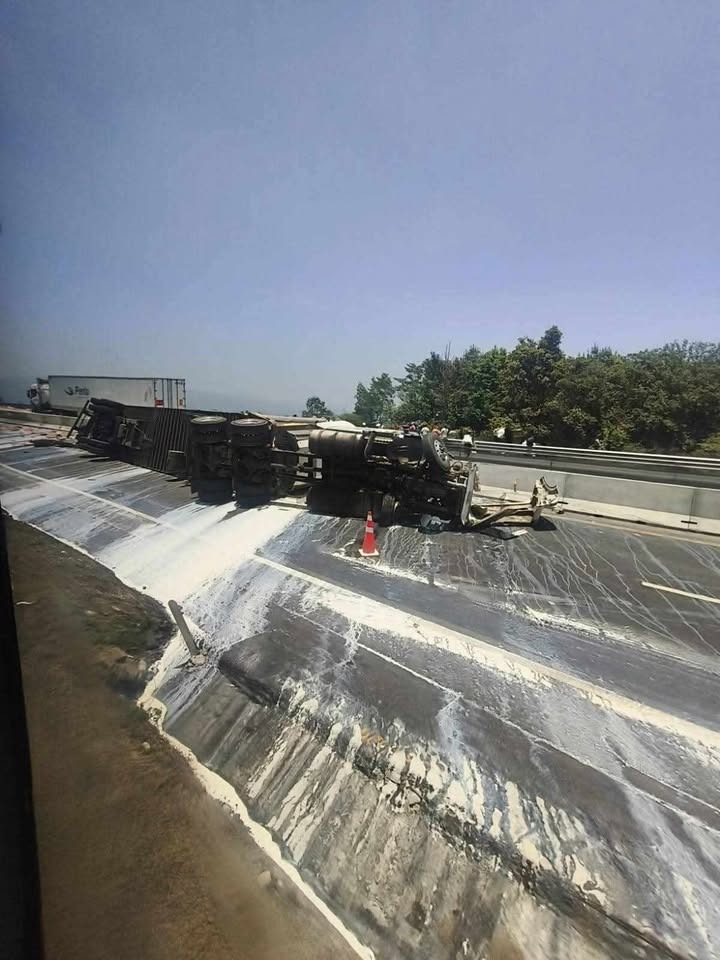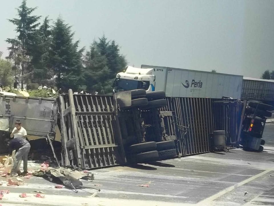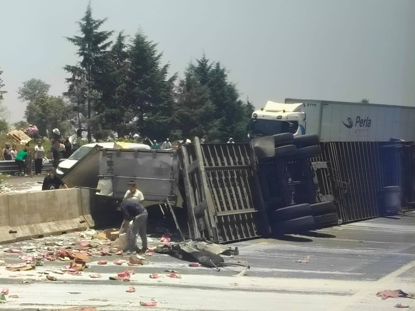 Tlacolulan, Ver.- Un tráiler cargado con leche se volcó este jueves en la autopista Xalapa-Perote, a la altura de la localidad de El Fresno en el municipio de Tlacolulan.