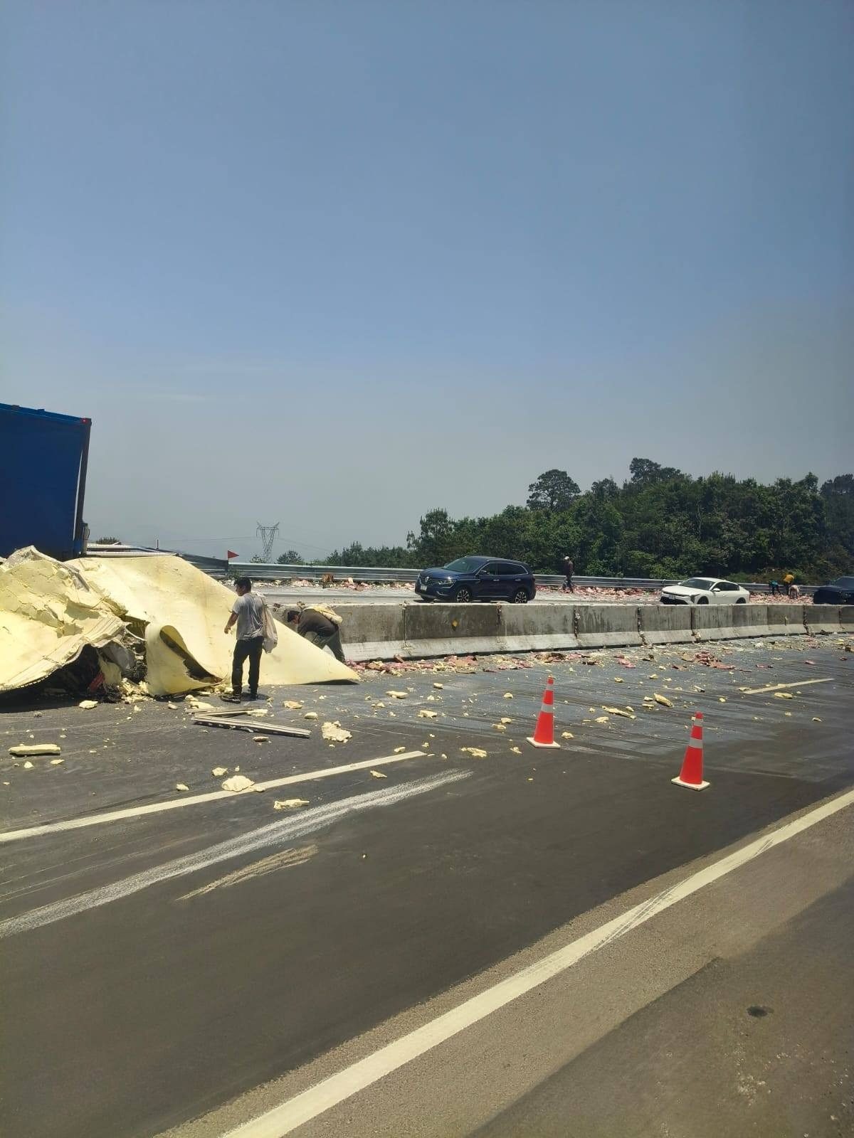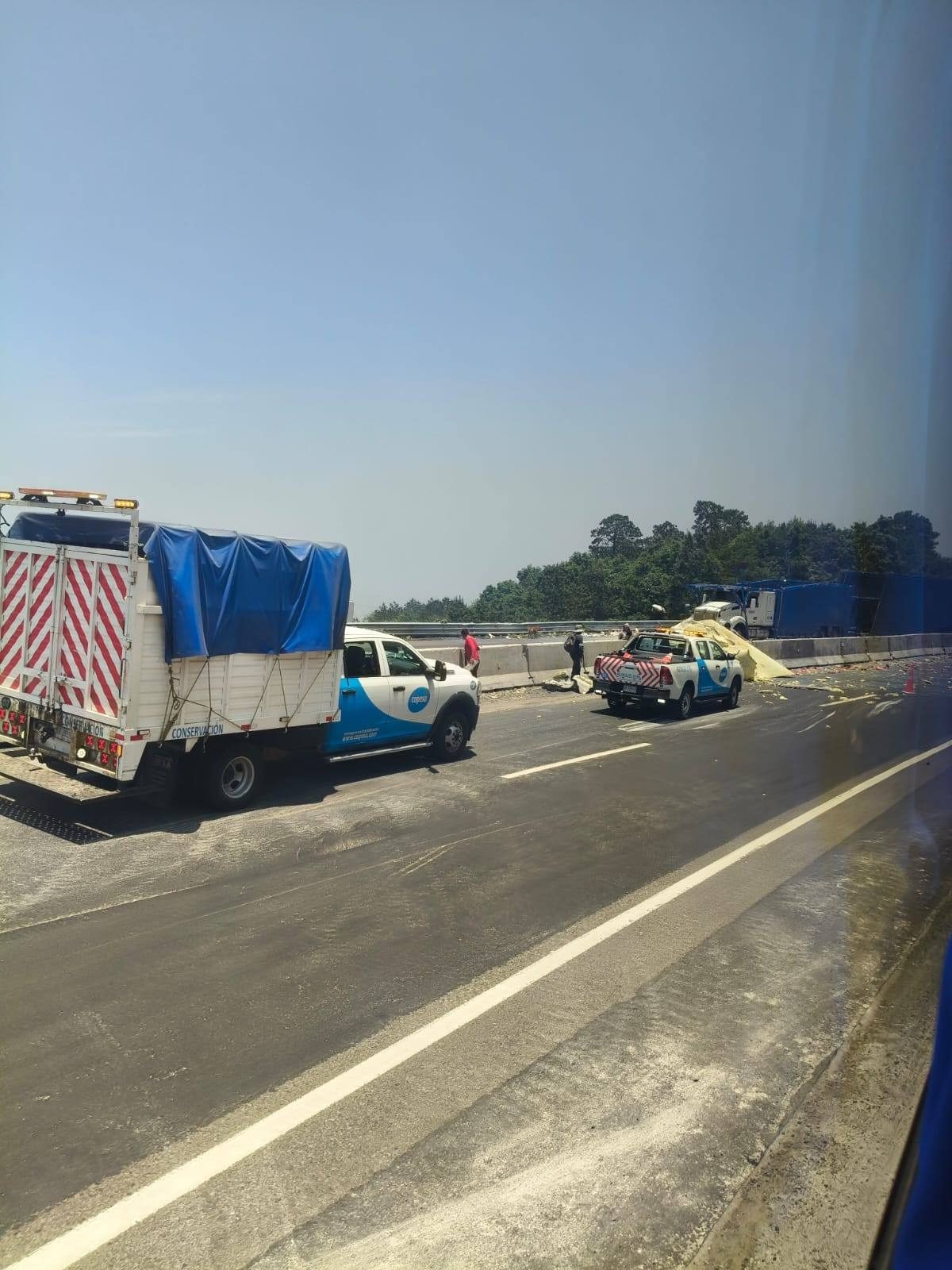 La circulación vehicular se vio interrumpida por el accidente, pero más por las personas que se atravesaban de ambos lados de los carriles de circulación, para llevarse la carga.
