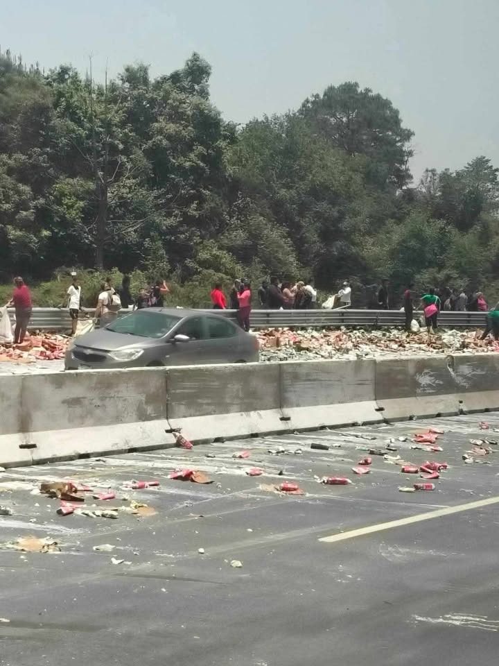Apenas ocurría el accidente cuando docenas de personas llegaron para llevarse la carga que se regó sobre el asfalto y la que se había quedado dentro de la caja de la unidad pesada.
