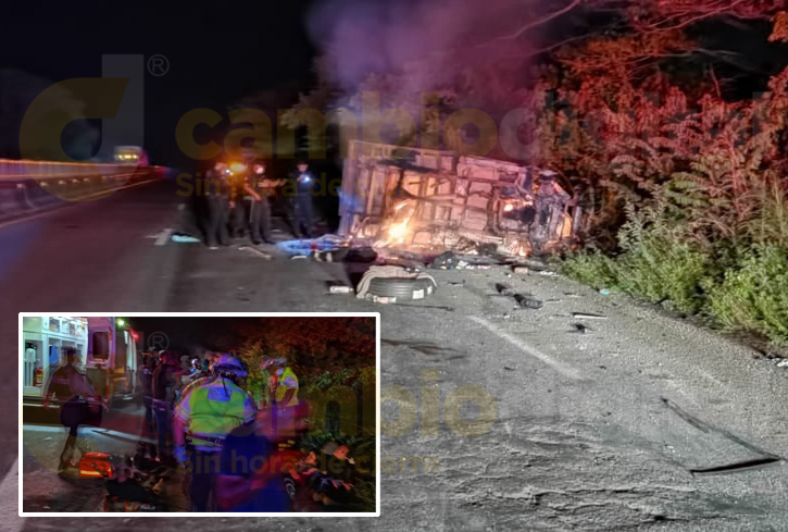 Veracruz, Ver.- Esta medianoche un camión que transportaba migrantes se accidentó e incendió en la autopista Nuevo Teapa-Cosoleacaque a la altura del municipio de Molocán al sur de Veracruz.