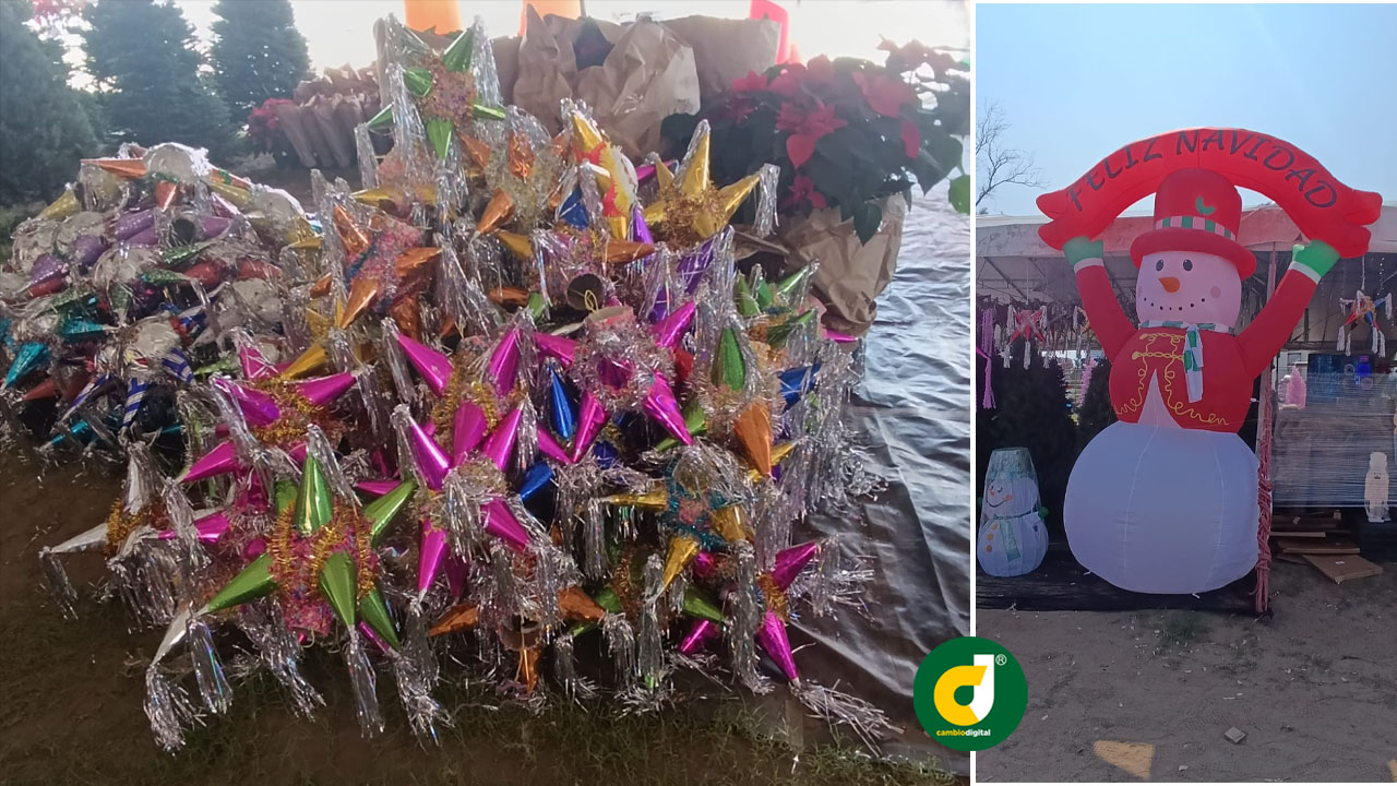 De igual cuentan con luces navideñas que ofrecen desde 130 pesos con 140 focos musicales hasta de mil 600 pesos con mil focos. En este lugar también ofertan esferas desde los 220 pesos las más económicas hasta los 750 pesos.